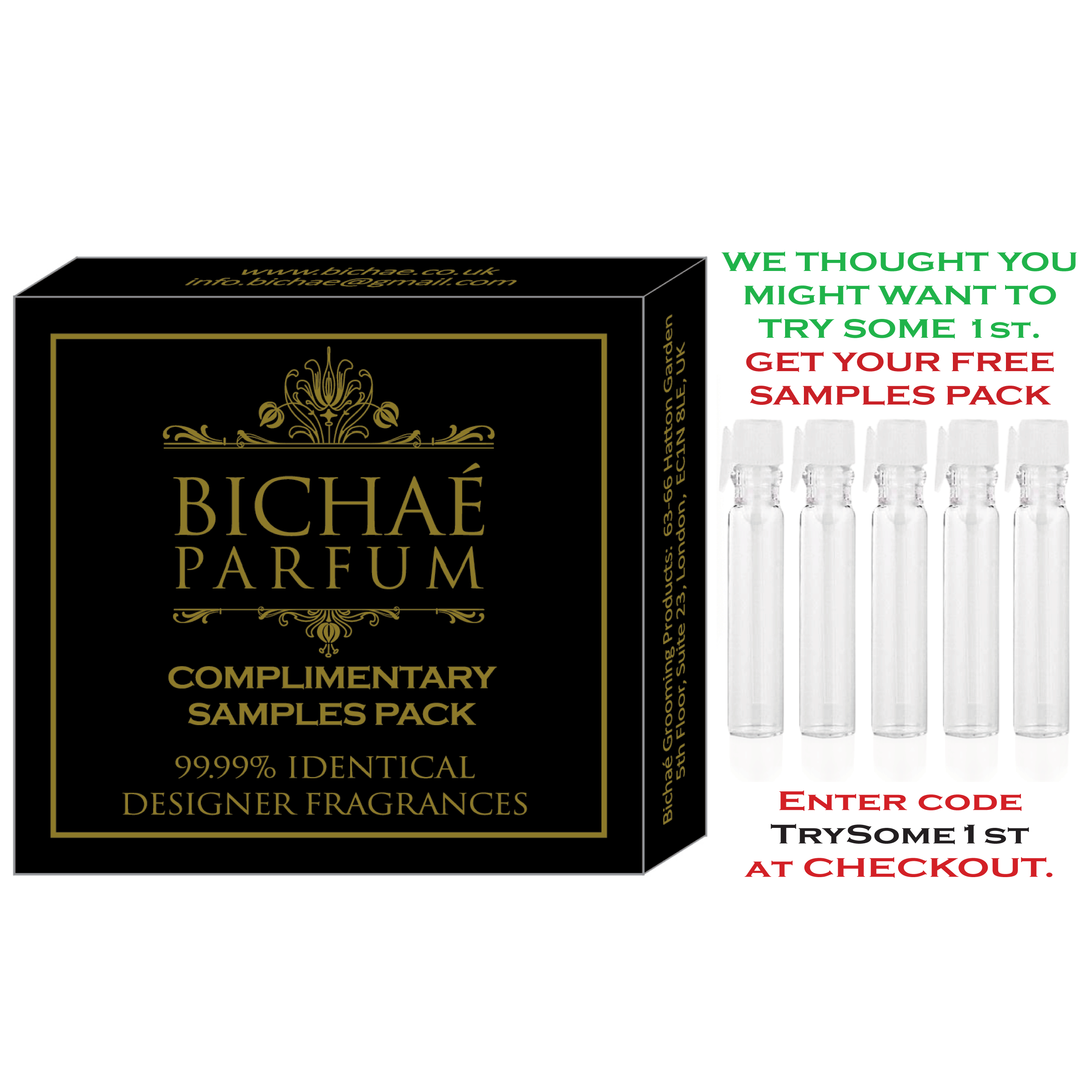 Here at Bichae, we pride ourselves in being the BEST supplier of replica designer-inspired fragrances for the ultimate scented experience. We stand by our fragrances so much that we would like to offer you the opportunity to try them first with up to five complimentary samples of your choice with every order using the code; TrySome1st